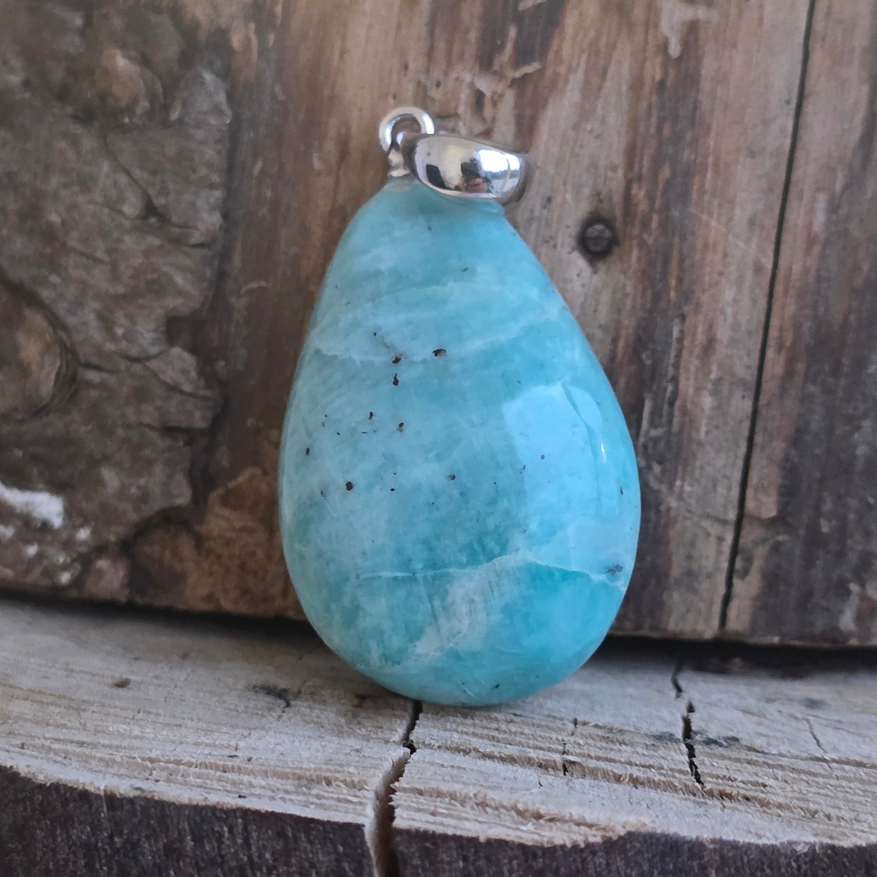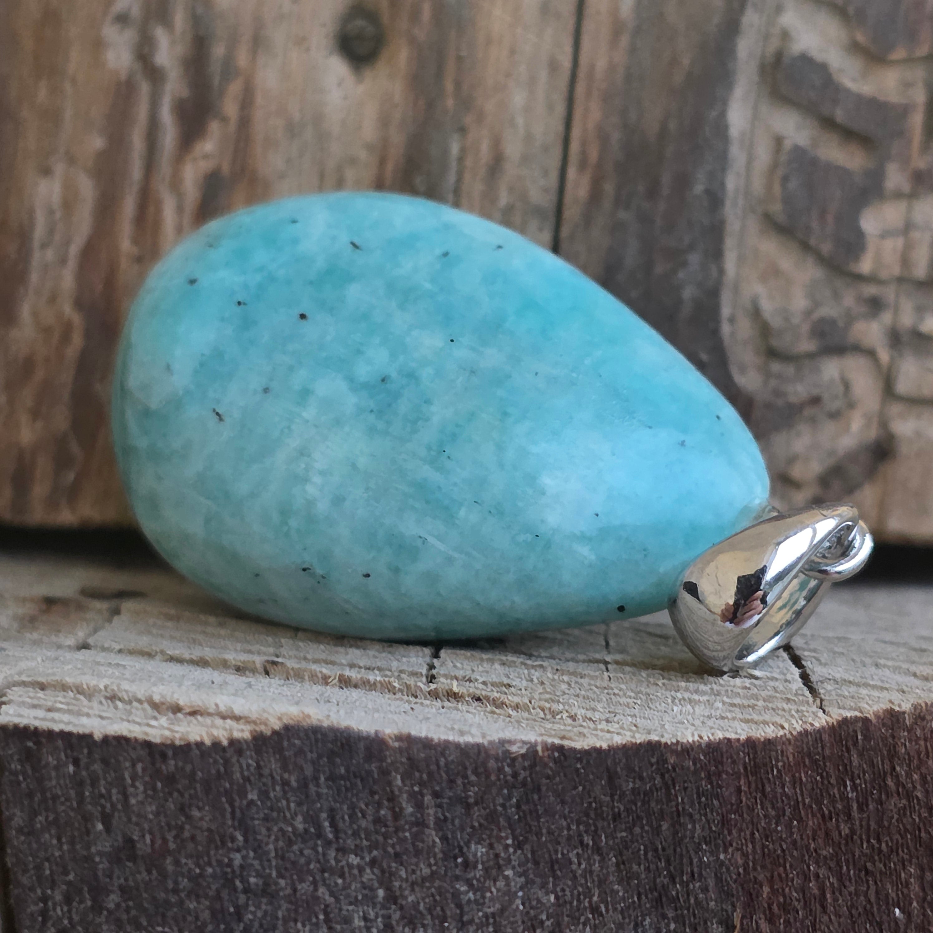Tento prívesok s amazonitom kabochón zdôrazňuje jemné odtiene zelenej a modrej farby kameňa, spojené s vnútorným pokojom a emocionálnou rovnováhou. Každý kus je jedinečný vďaka prirodzeným variáciám farby a textúry, čo robí tento prívesok naozaj zvláštnym šperkom.