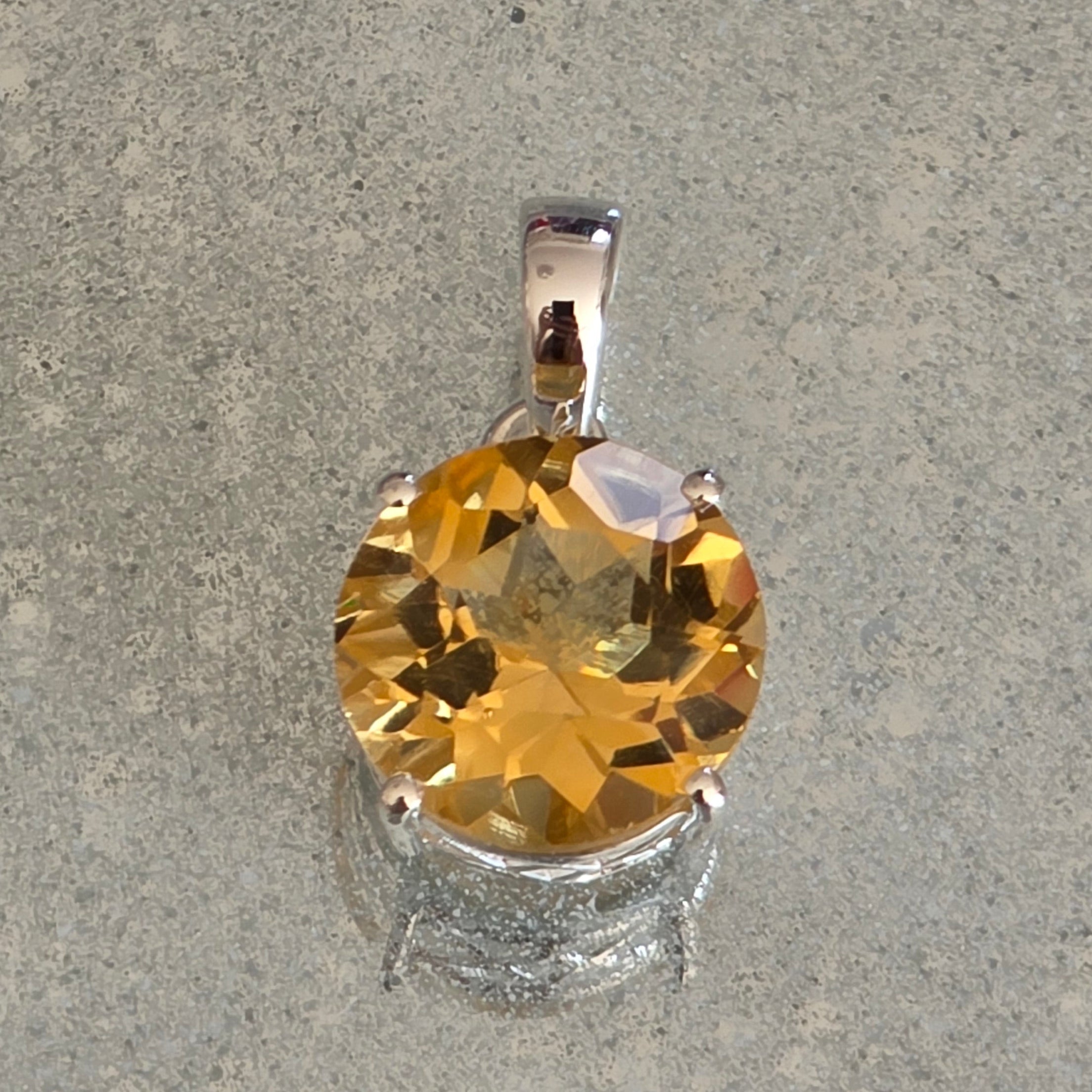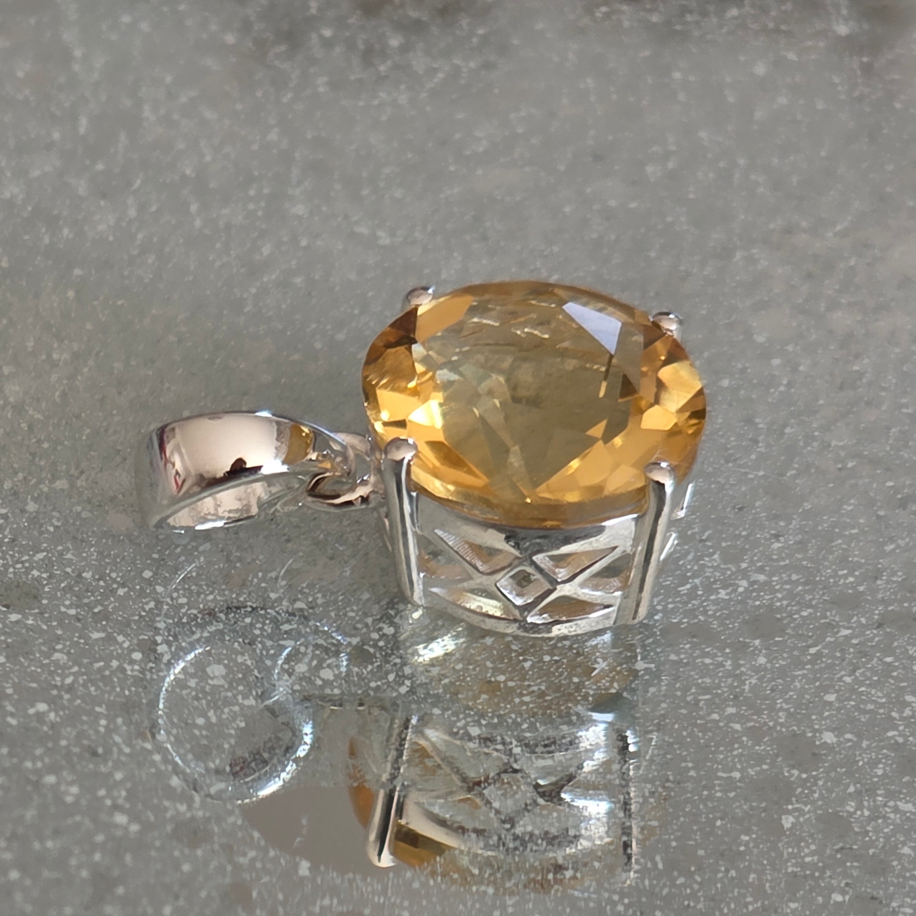 Jasný a energický prívesok, v ktorom sa citrín stáva stredobodom jednoduchej, ale výraznej šperkovnice. Okrúhly tvar zvýrazňuje čistotu a prirodzený lesk kameňa, umožňujúc svetlu odrážať sa z každej fazety.