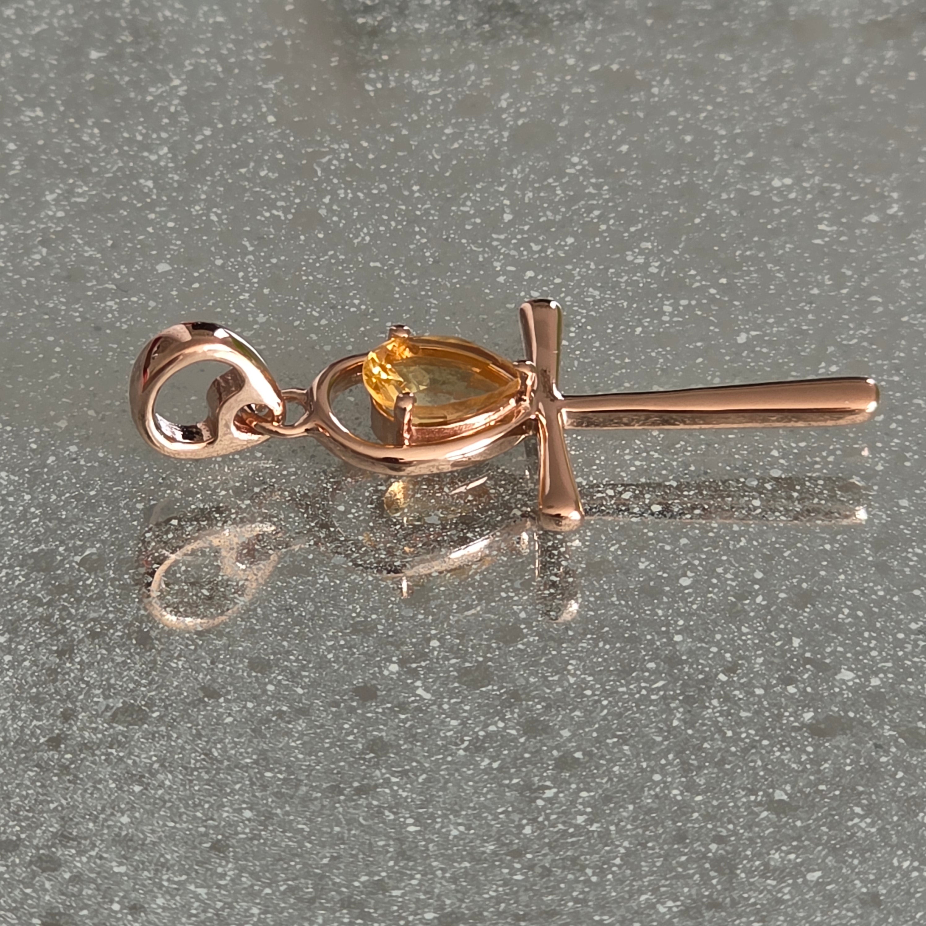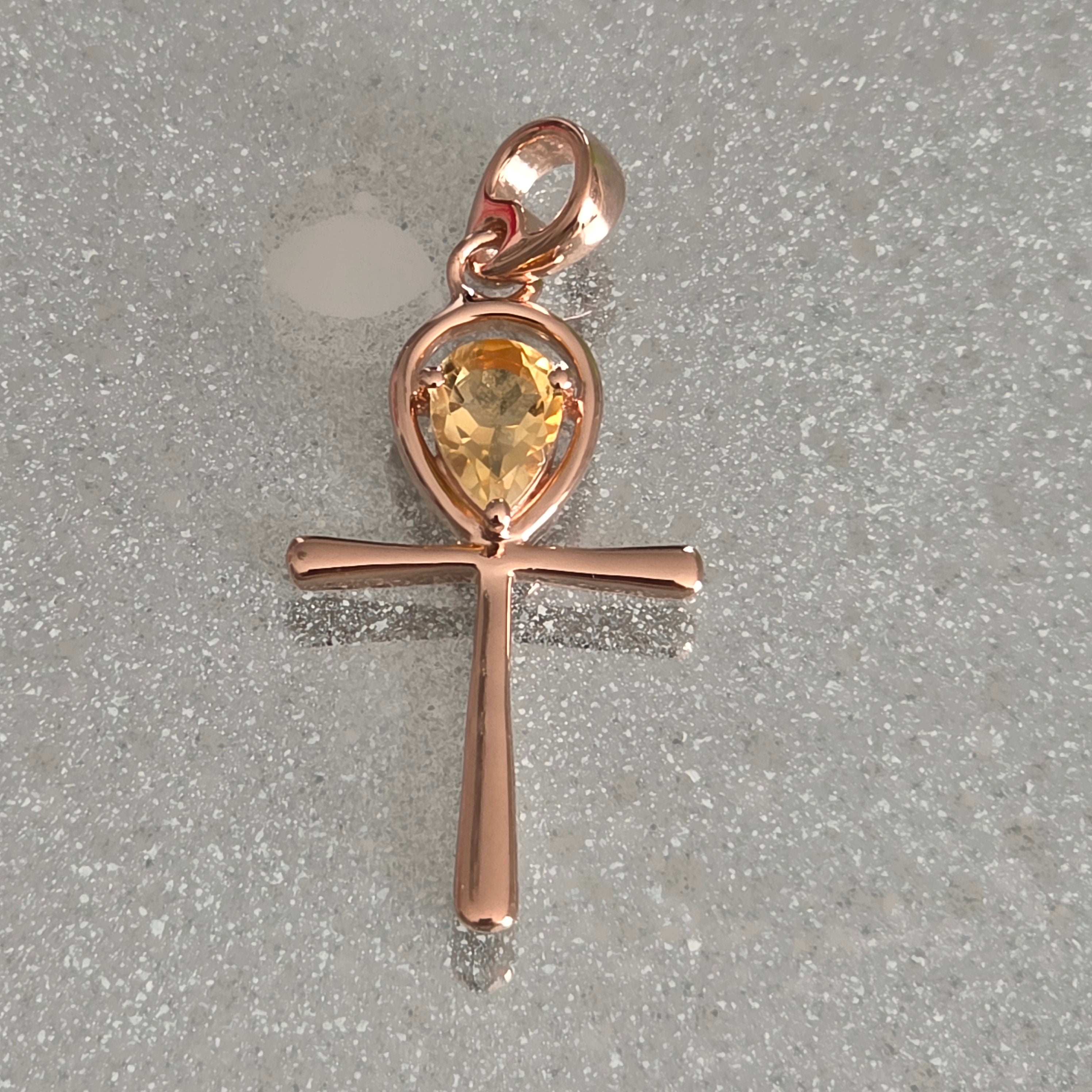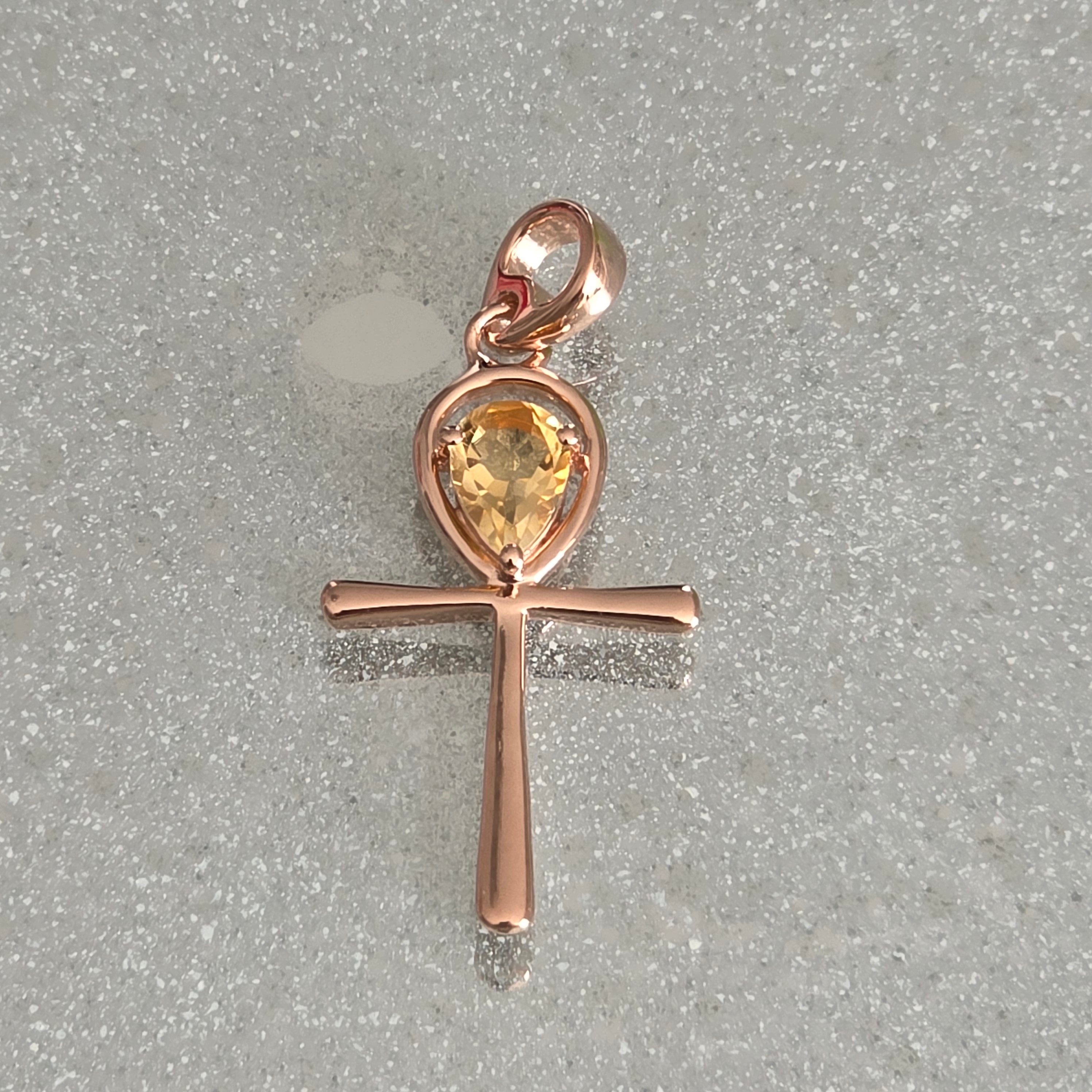 Prívesok s výrazným symbolom, v ktorom je tvar "Kľúča života" (Ankh) reinterpretovaný do elegantného dizajnu, doplnený teplým leskom citrínu. Kameň v tvare hrušky pridáva svetlý akcent, vyvažuje proporcie a jemne upútava pohľad.