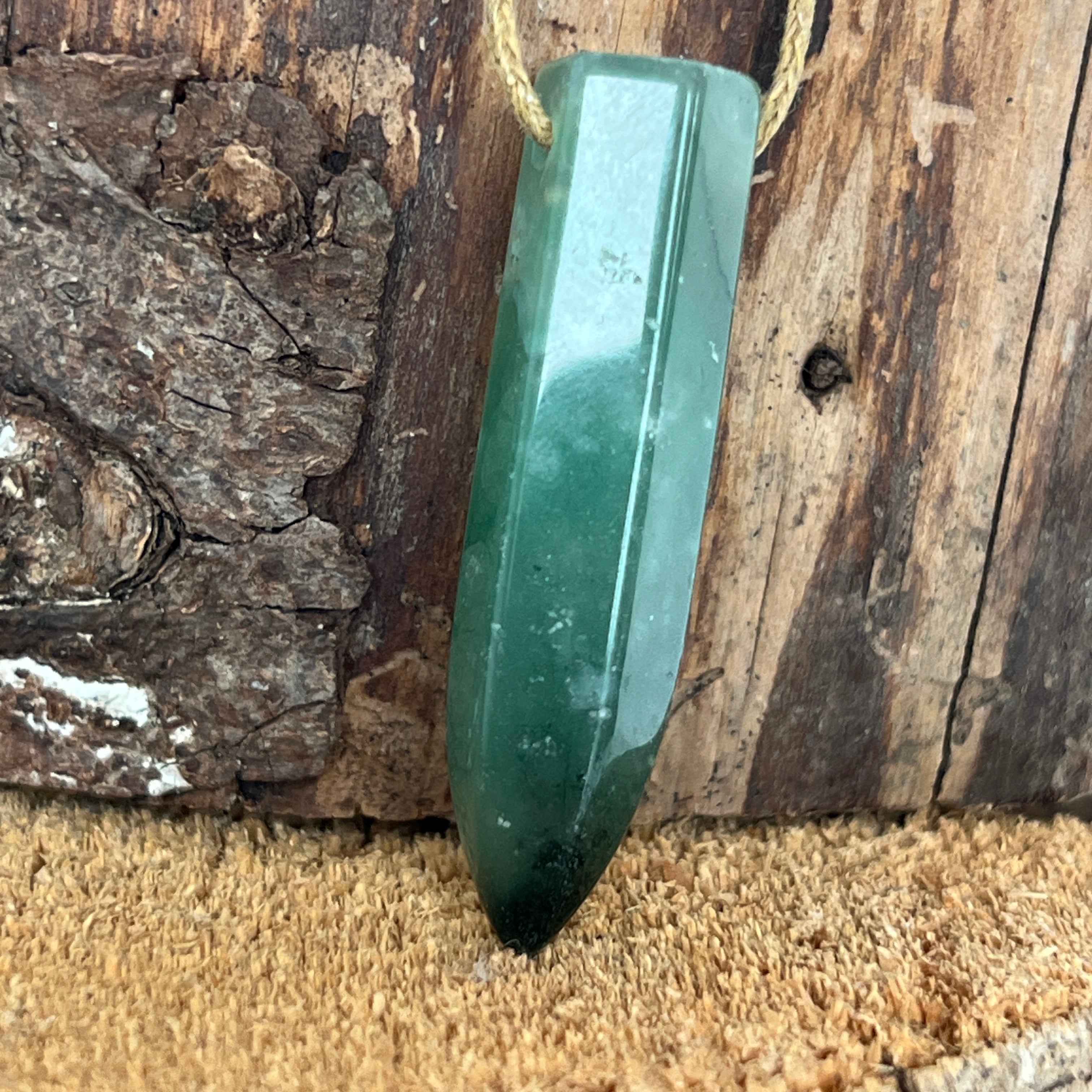 Tento náhrdelník na nastaviteľnom šnúrku z machového achátu, vyrezávaný a brúsený do tvaru špica, prináša krásu prírody priamo nositeľovi. Jedinečná textúra s zelenými inklúziami pripomínajúcimi mach alebo lesné scenérie robí každý kus odlišným a plným života.