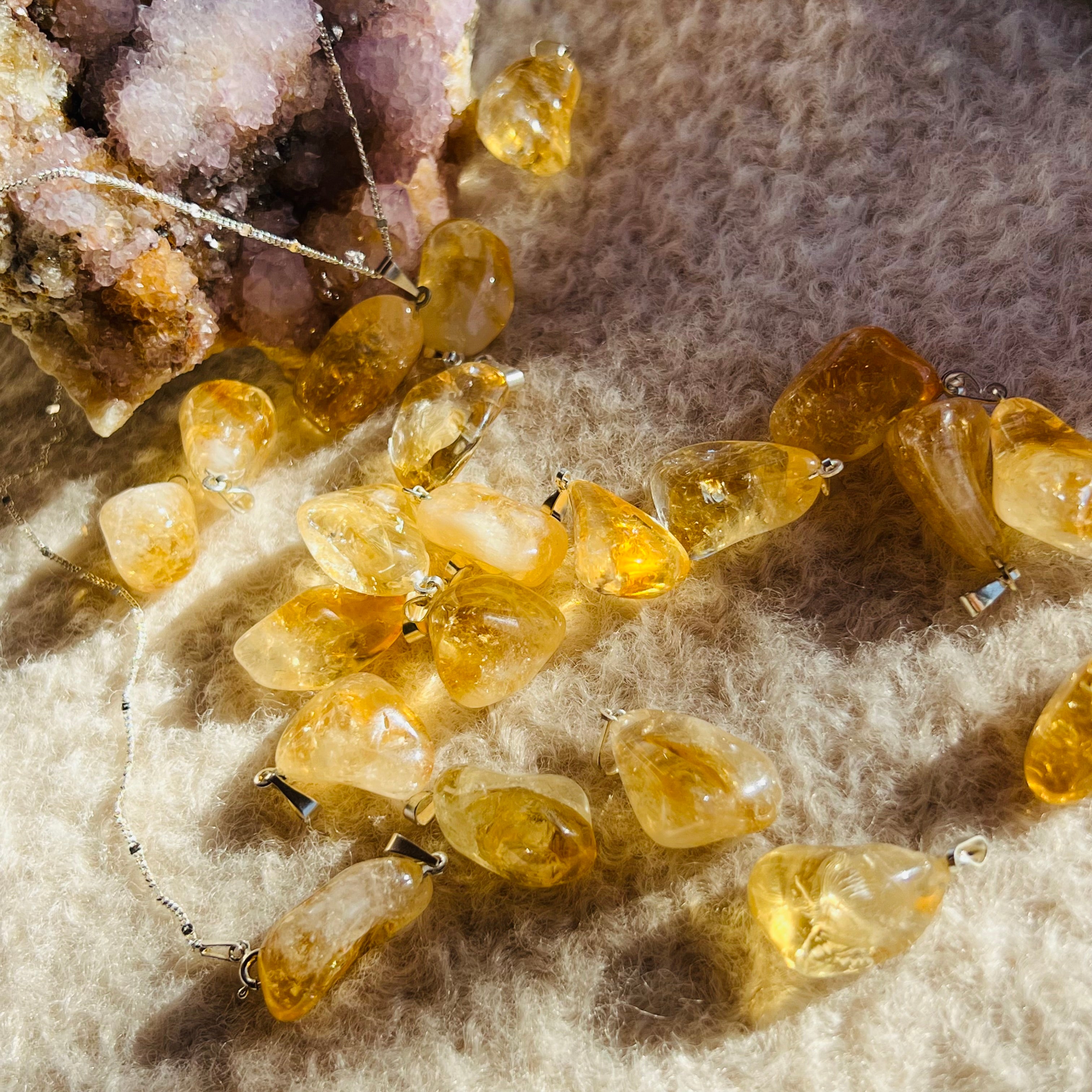 • Kameň: citrín prírodný – brúsený tvar, lesklý povrch