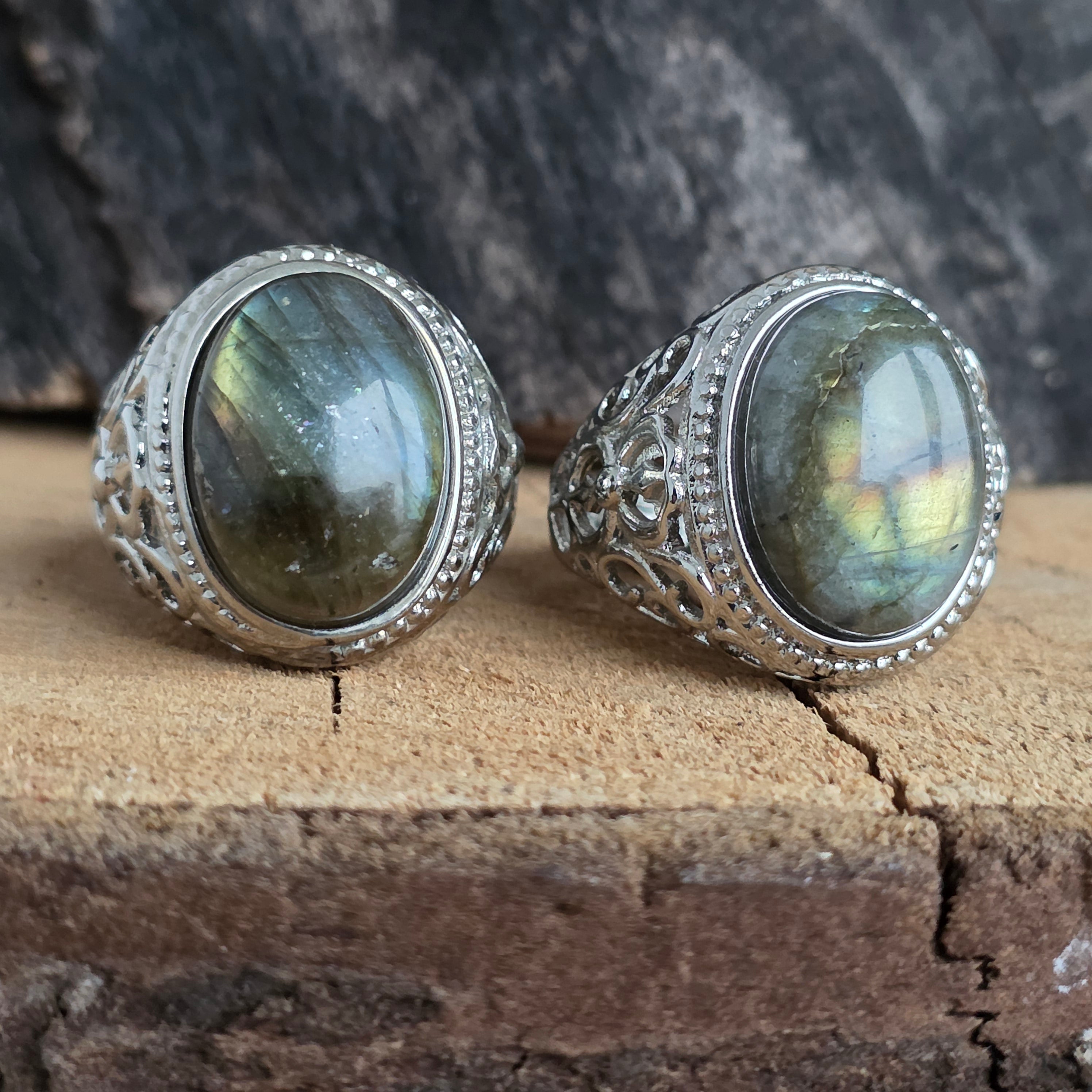- Kameň: prírodný labradorit, oválny tvar (oval shape)