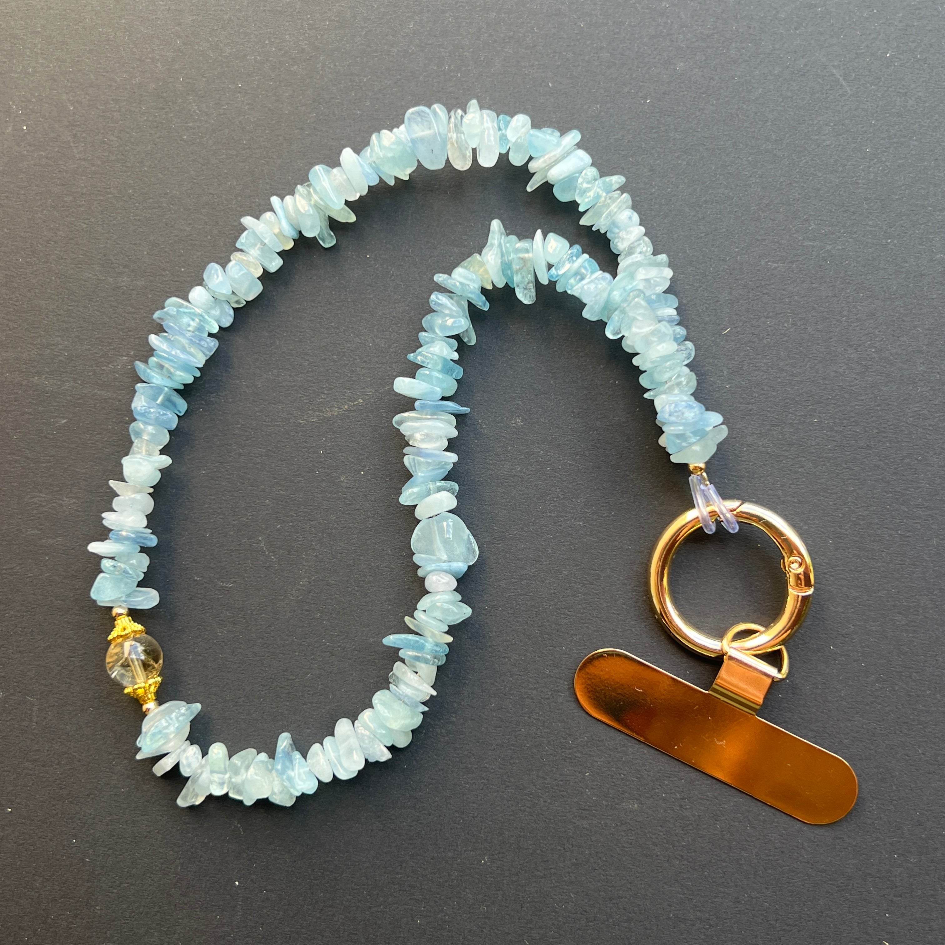 Obohaťte svoj telefón elegantnou retiazkou vyrobenou z prírodných akvamarínových úlomkov, dlhou 40 cm. Príslušenstvo, ktoré prináša pokoj, jasnosť a čistiacu energiu do vášho každodenného života.