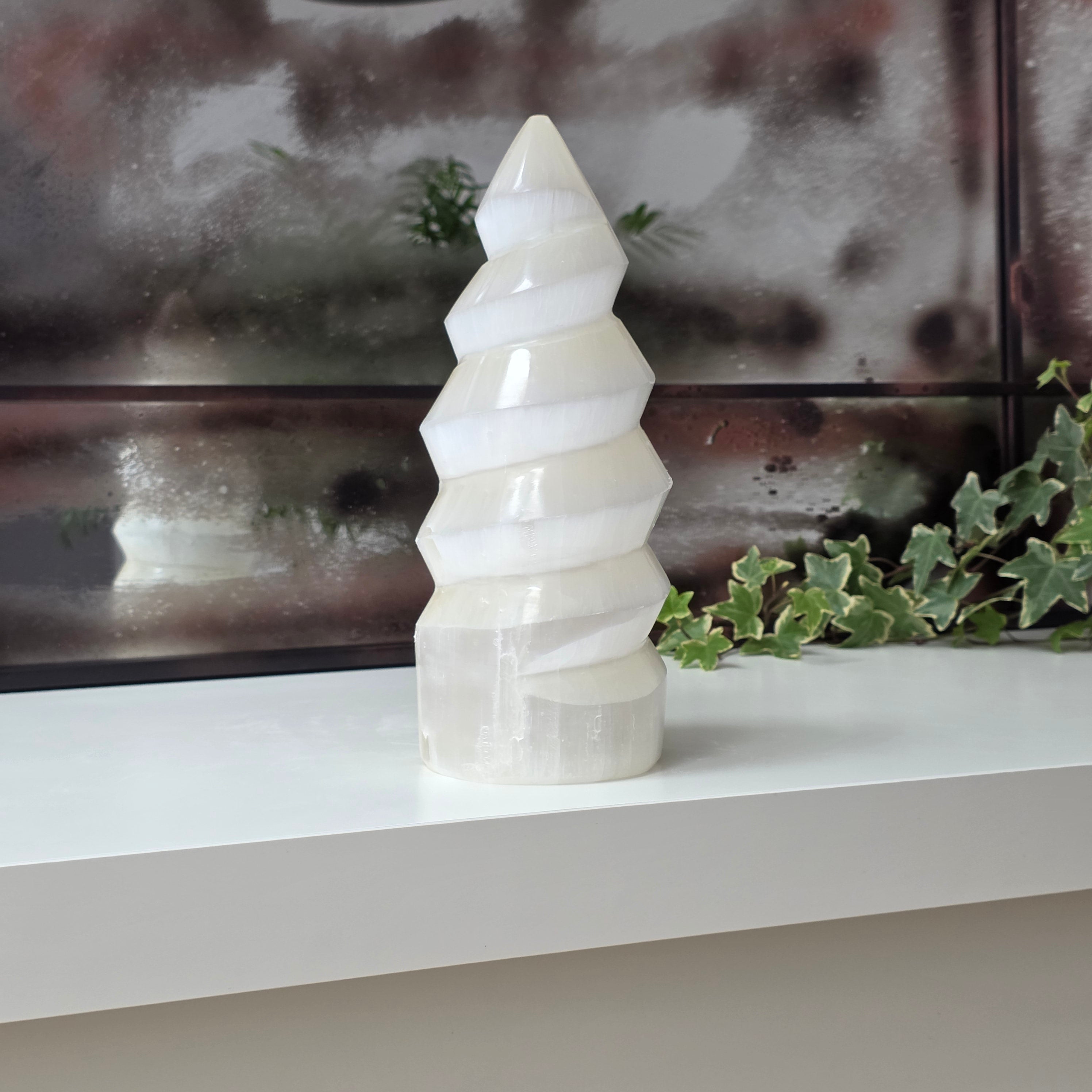 Tento svietnik v tvare veže, vyrobený z prírodného selenitu, prináša do každého priestoru nádych mágie a svetla. Selenit je považovaný za kameň čistoty a vnútorného pokoja.