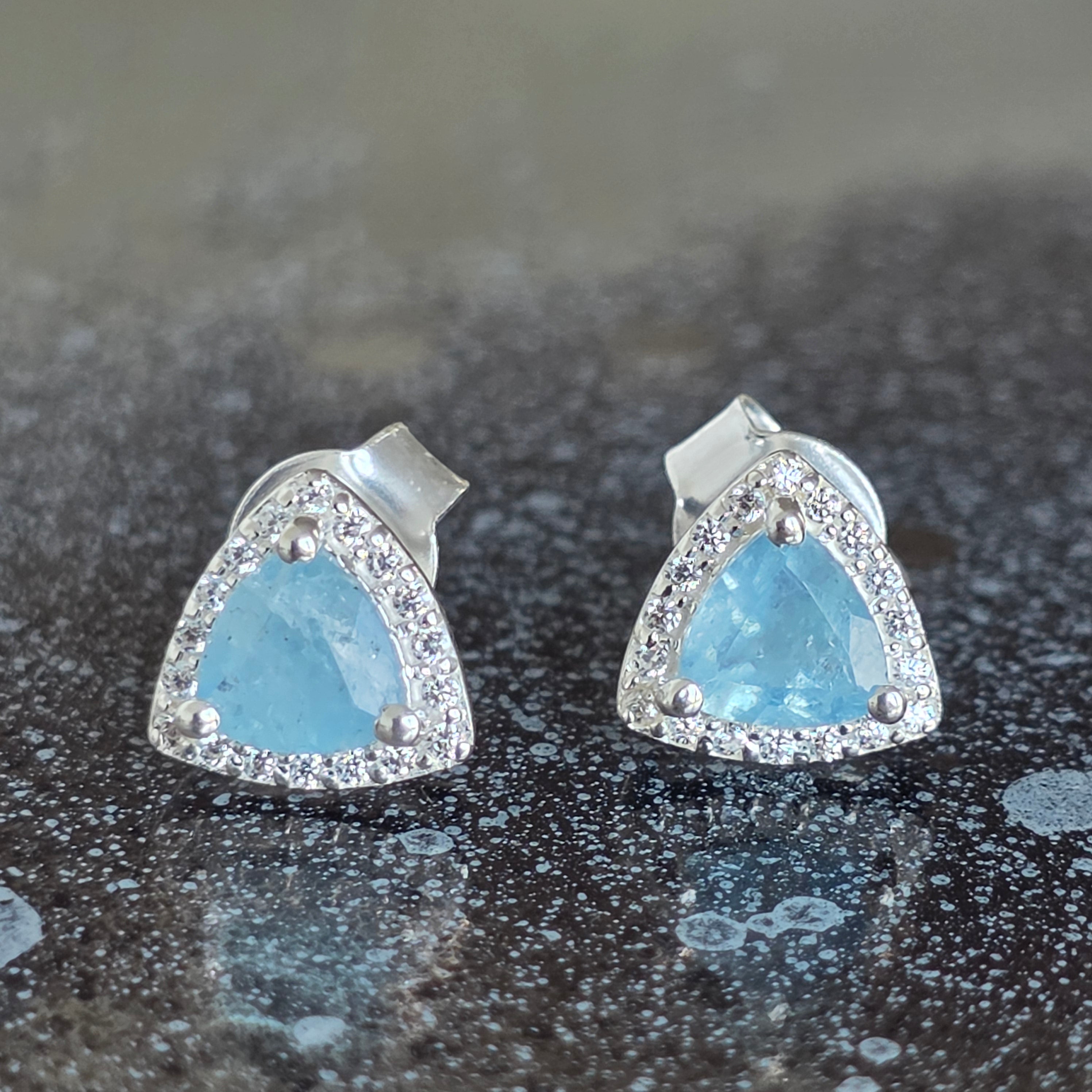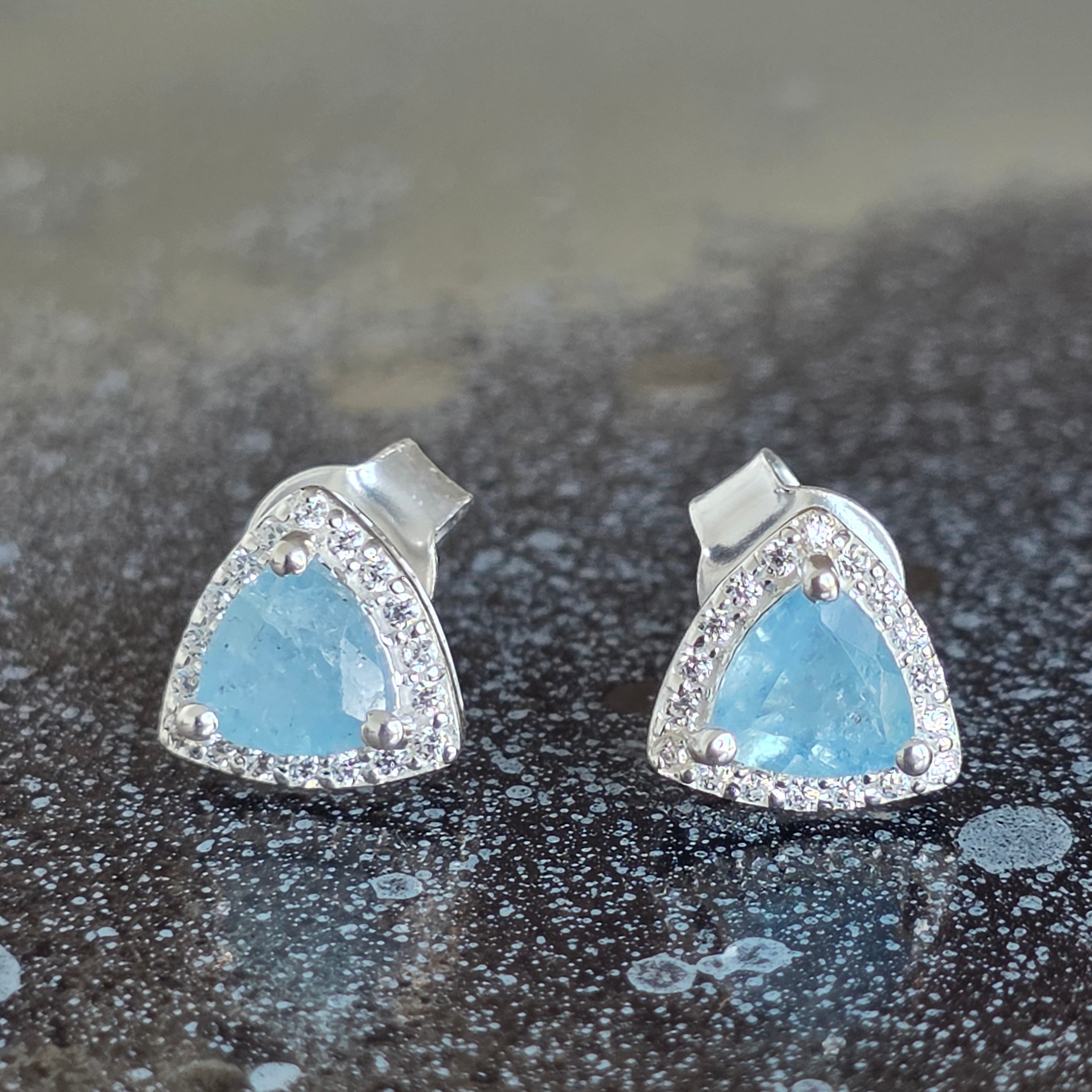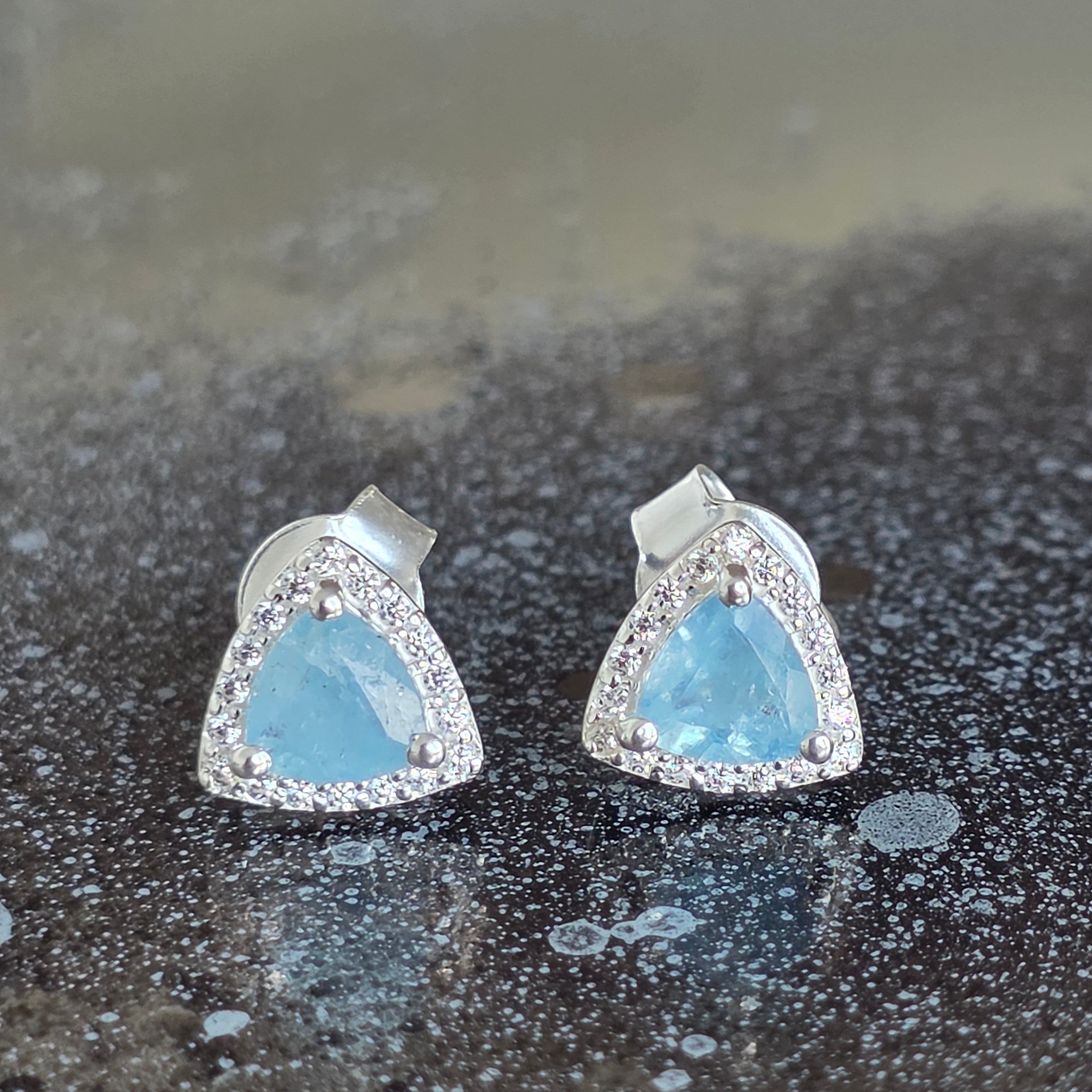 Náušnice „Trillion“ zaujmú moderným a vyváženým dizajnom, v ktorom trojuholníkový tvar akvamarínu prináša dojem dynamiky a originality.