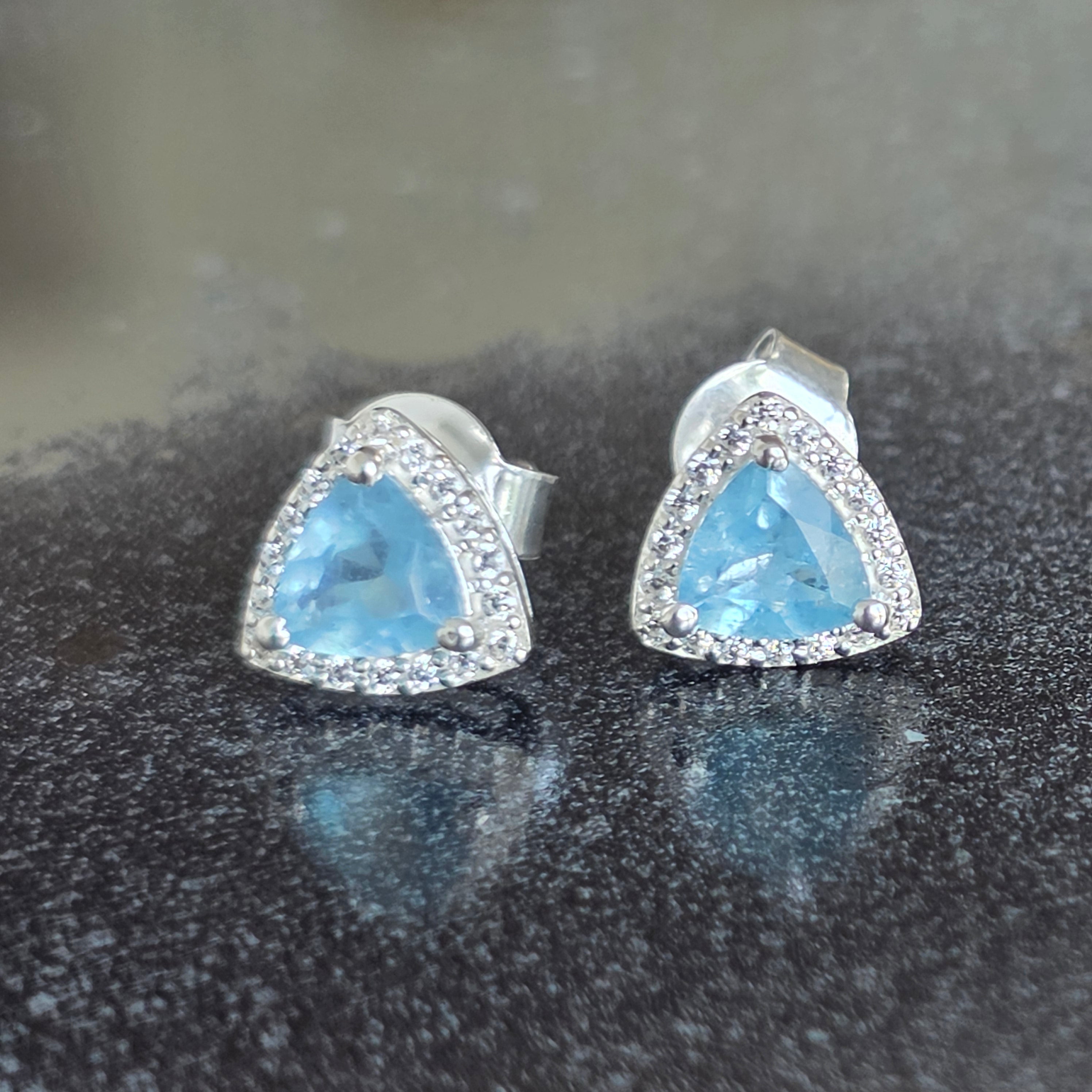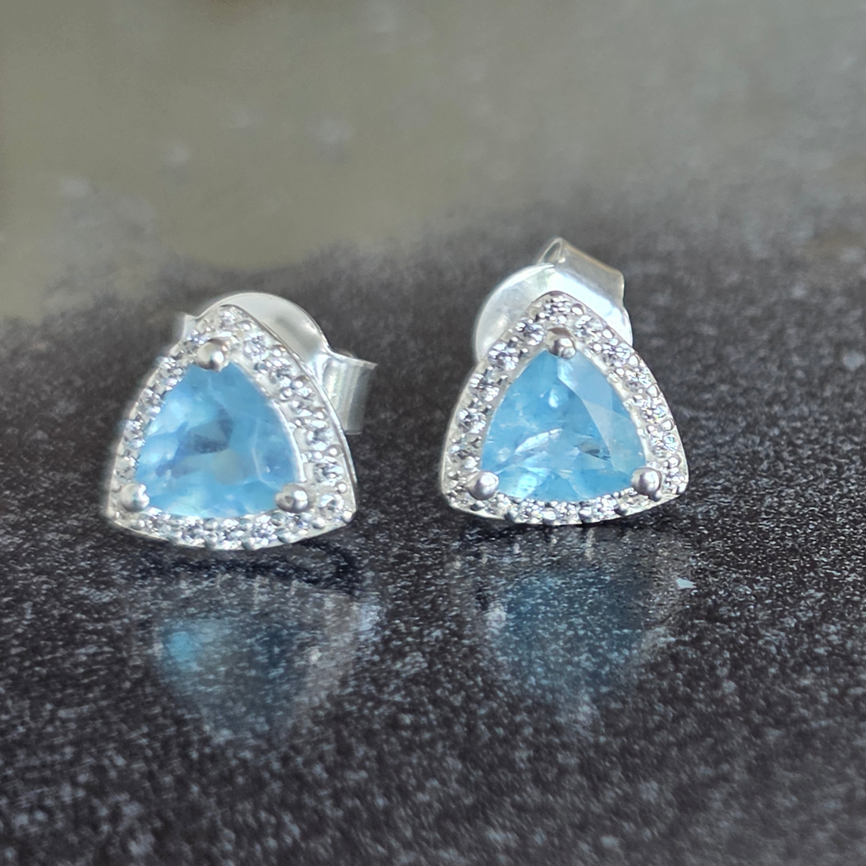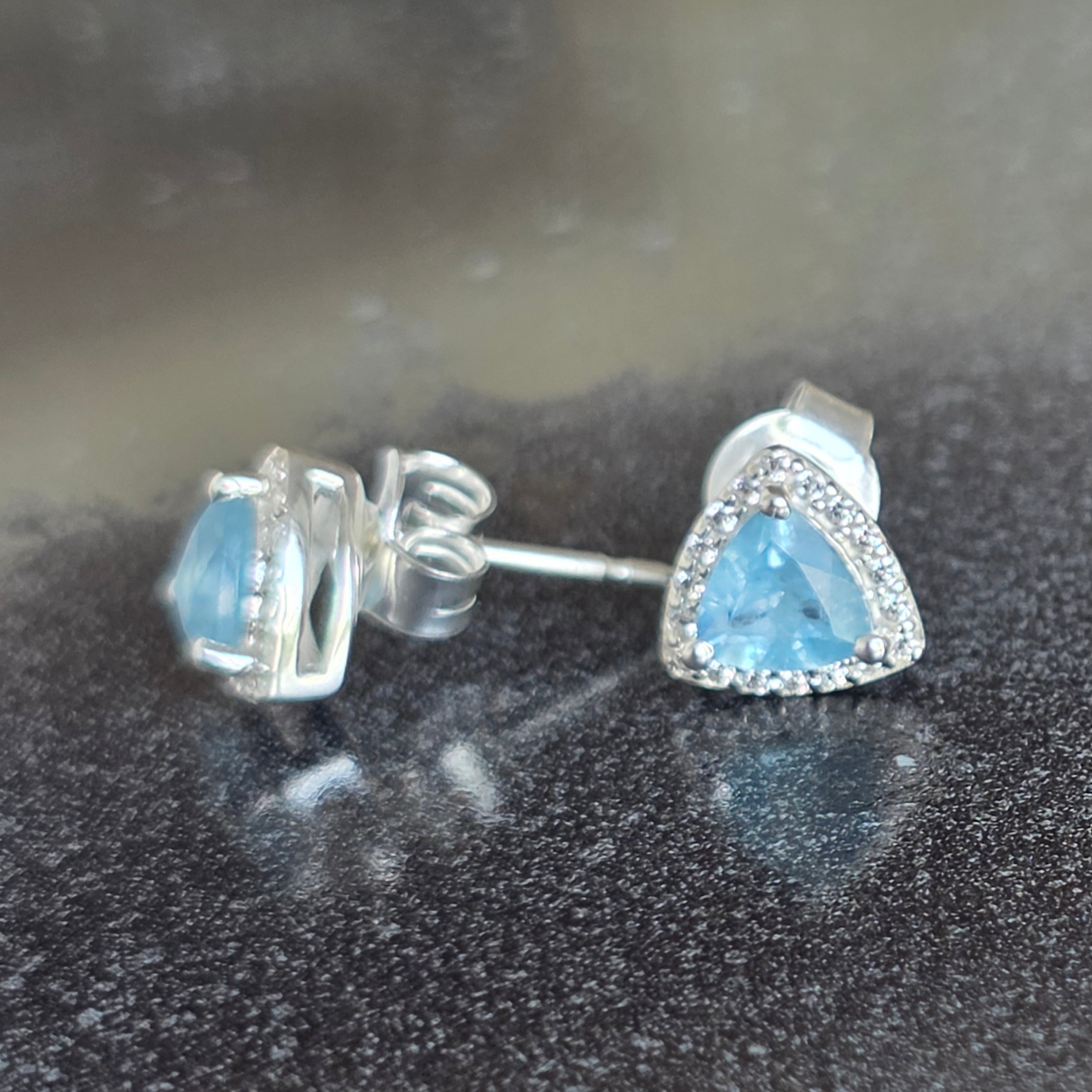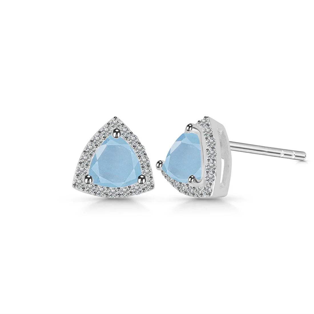 Náušnice „Trillion“ zaujmú moderným a vyváženým dizajnom, v ktorom trojuholníkový tvar akvamarínu prináša dojem dynamiky a originality.