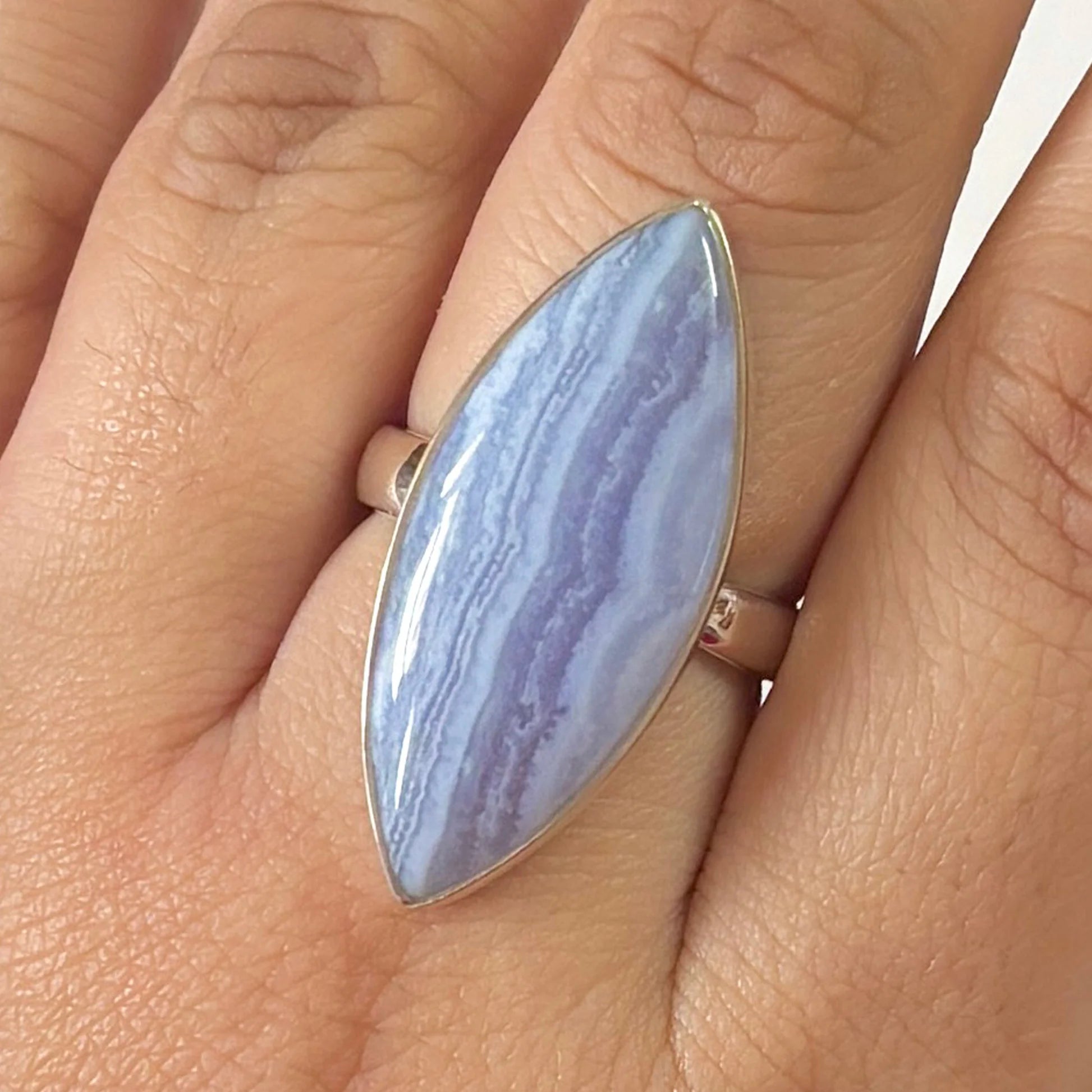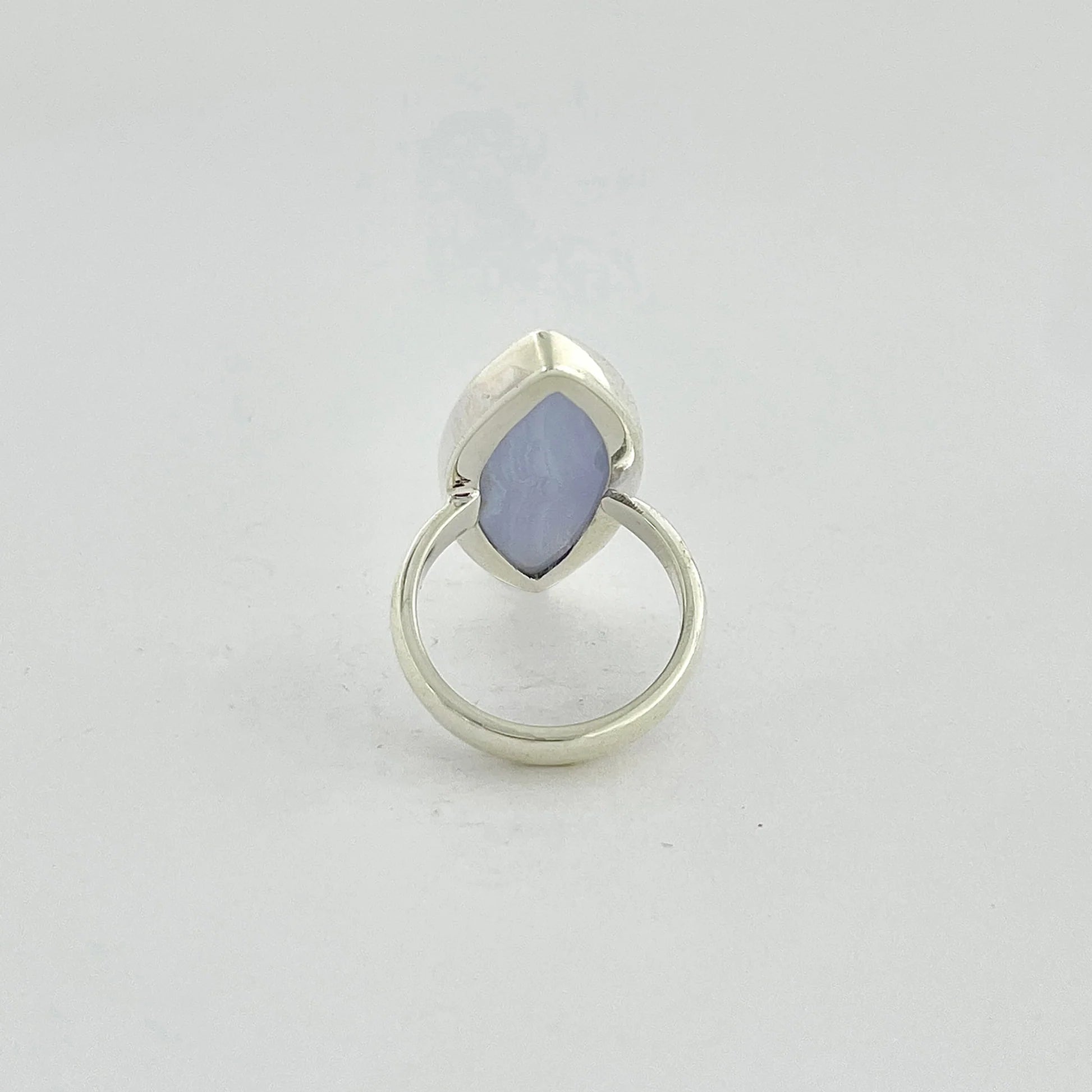 Strieborný chalcedónový modrý čipkovaný prsteň | Model 1