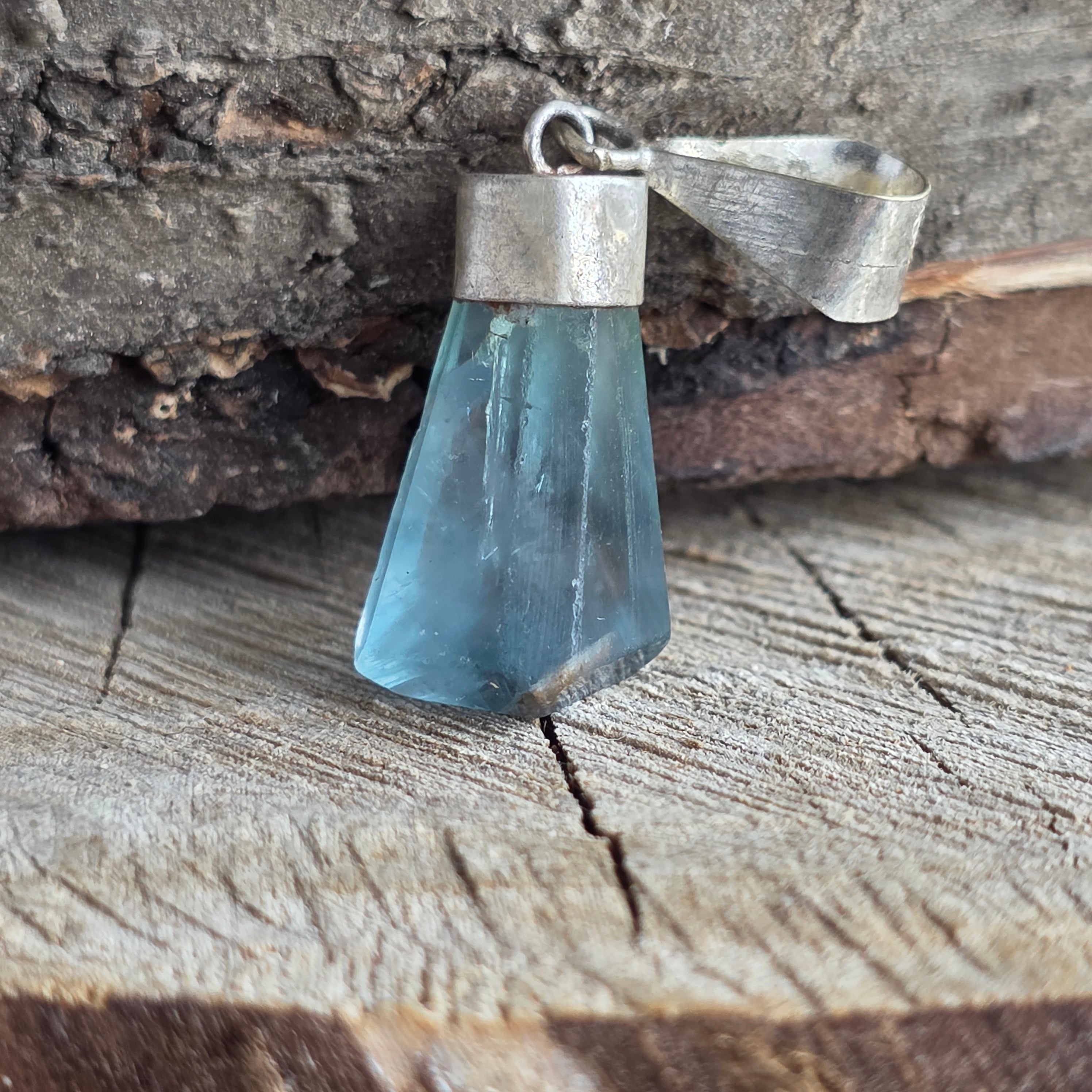 Tento strieborný prívesok s fluoritom zaujme svojou transparentnosťou a rôznymi odtieňmi, od zelenej po fialovú. Jeho jednoduchý dizajn zvýrazňuje prirodzenú krásu kameňa.