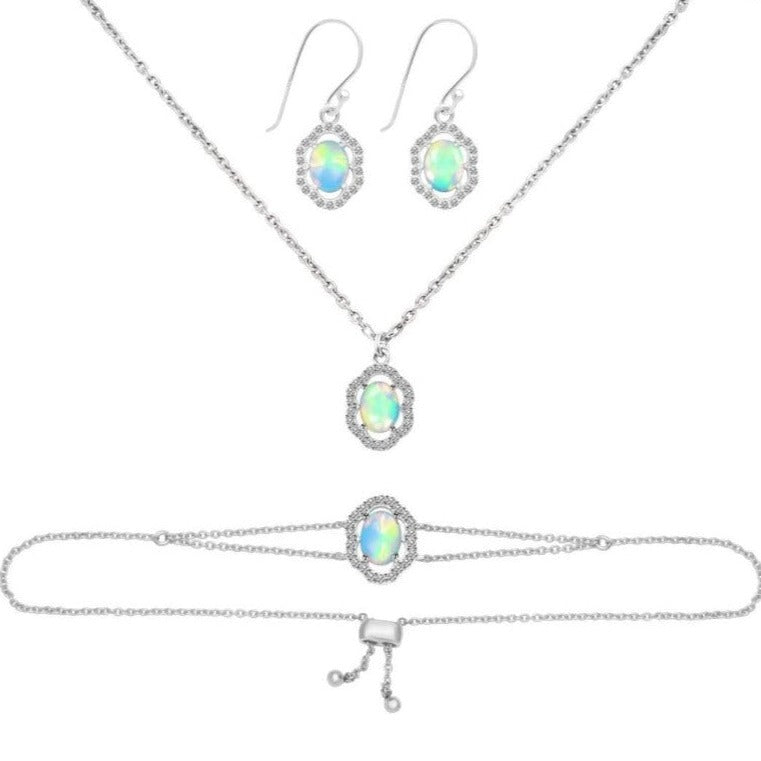 Súprava šperkov opál, biely topás zo striebra
