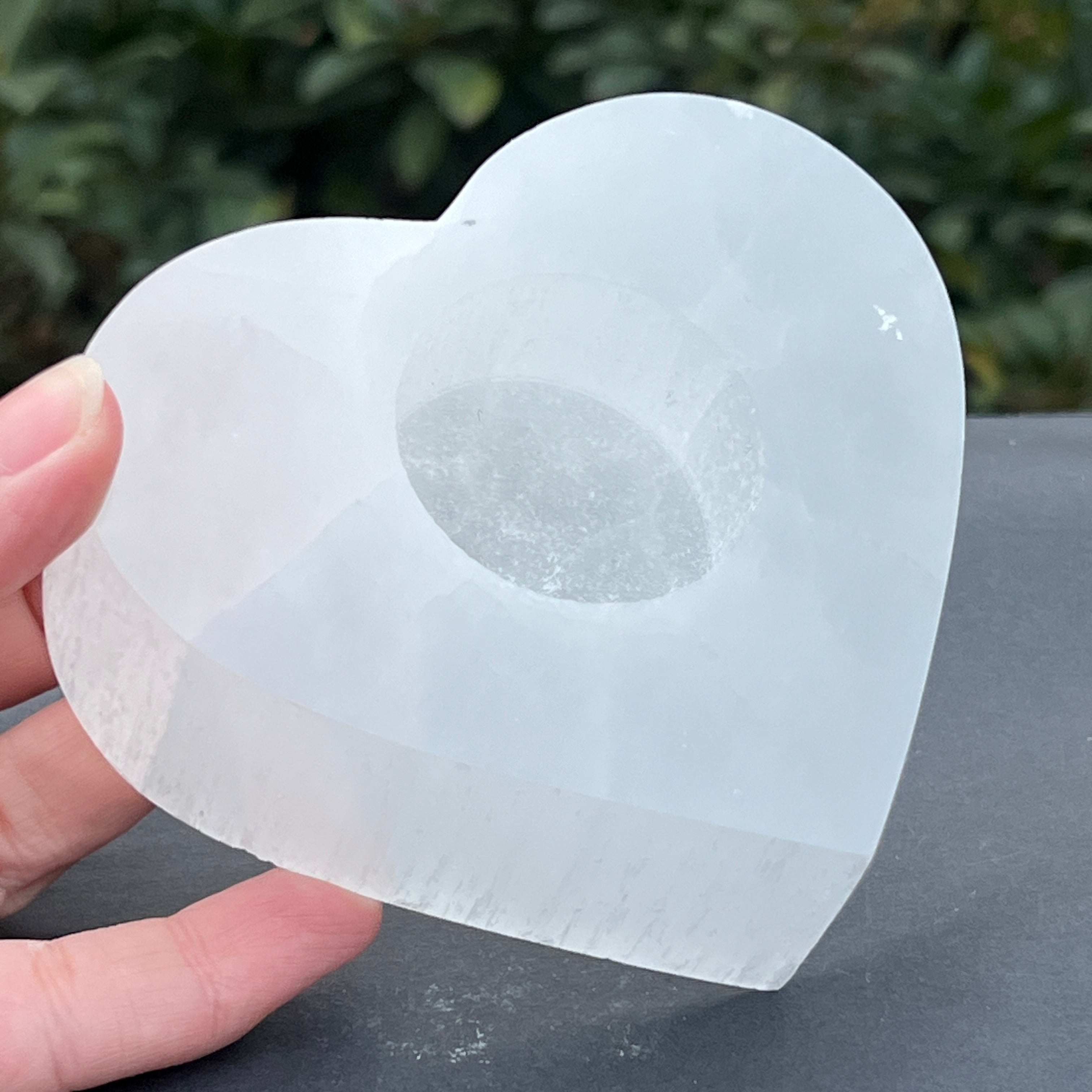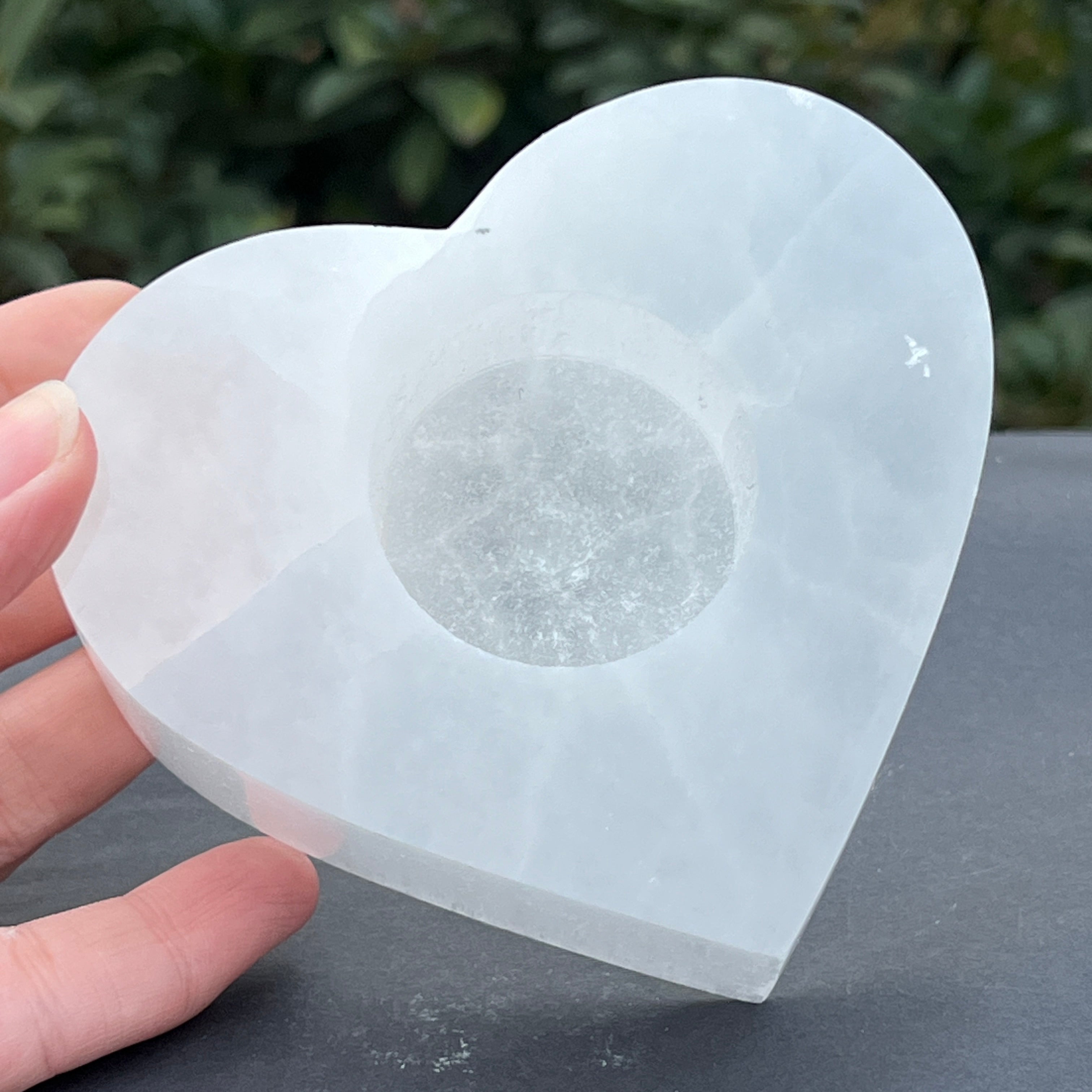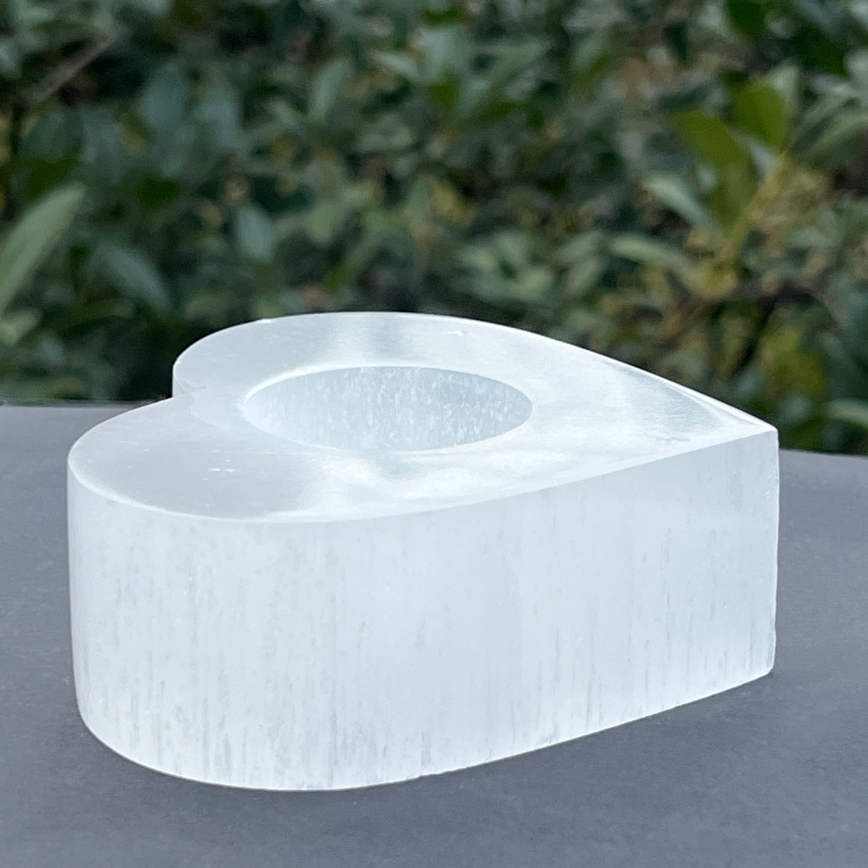 Sviečkový držiak selenit srdce, rozmery: 10 * 8,5 cm.