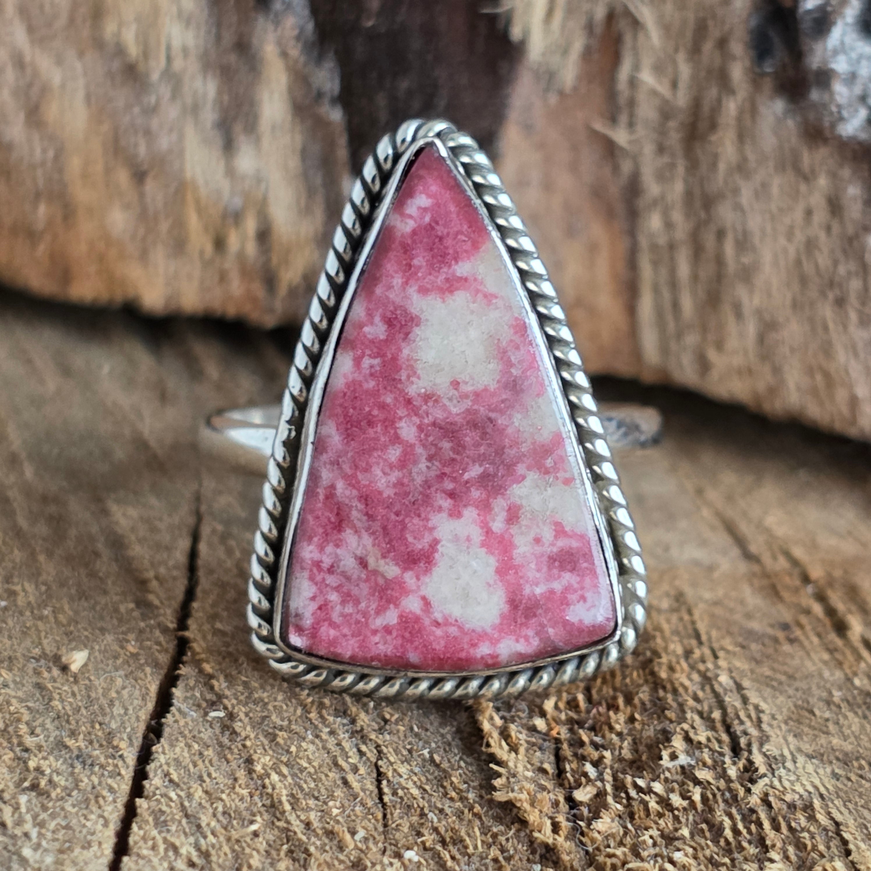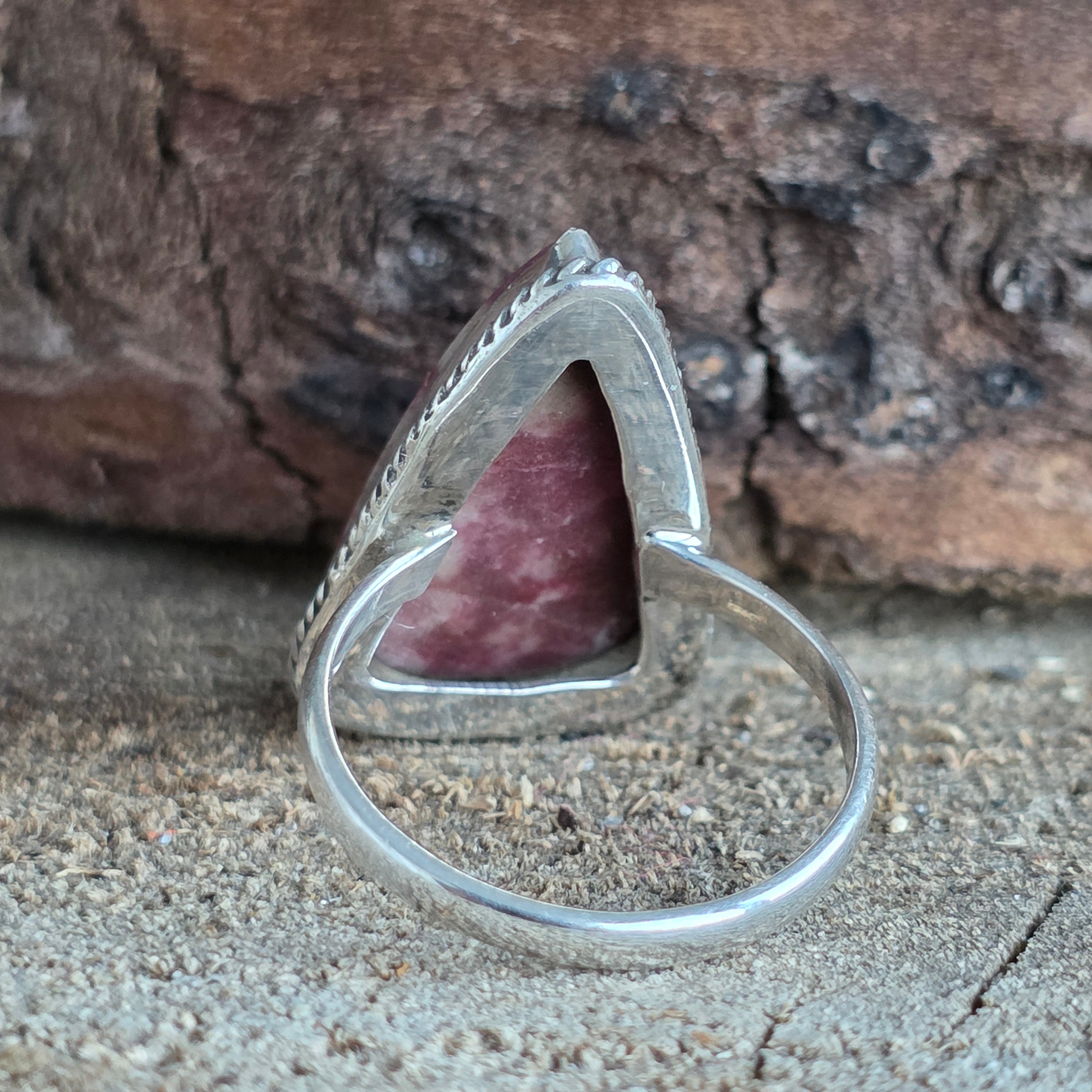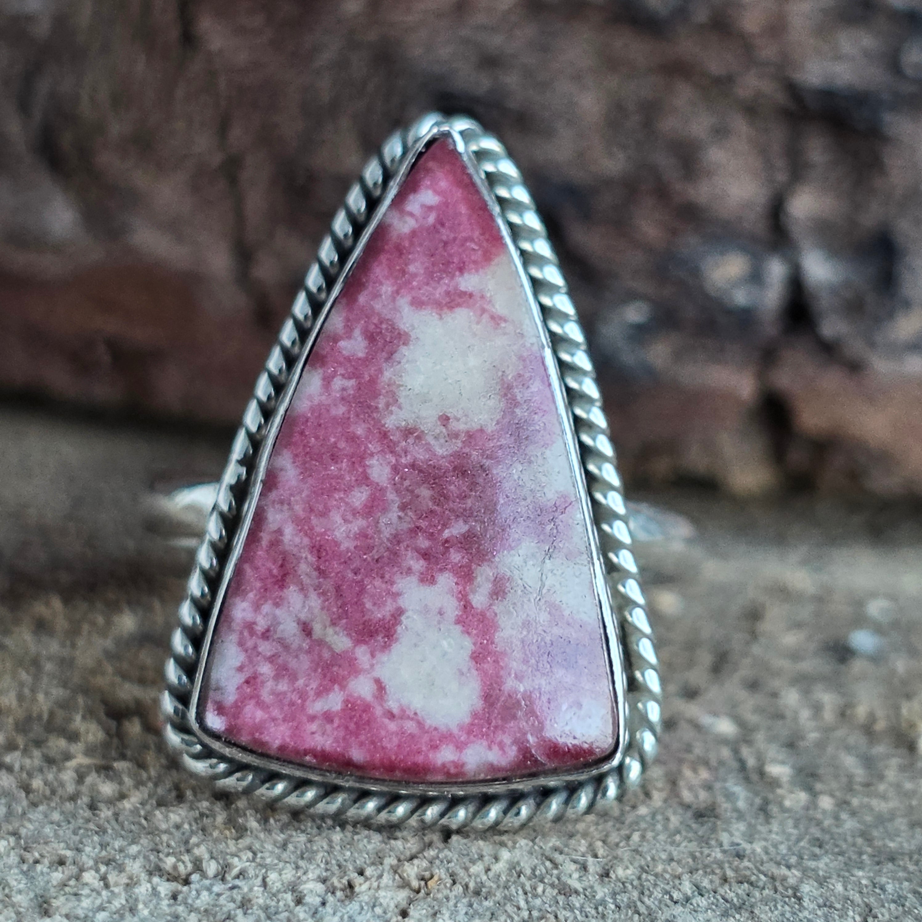 Prsteň zo striebra 925, nesúci v sebe energiu severnej zeme – Tulit, ružovú odrodu zoisitu, s prirodzenou štruktúrou a jemnými farebnými odtieňmi od lososovej ružovej cez fuchsii až po vápencovo bielu.