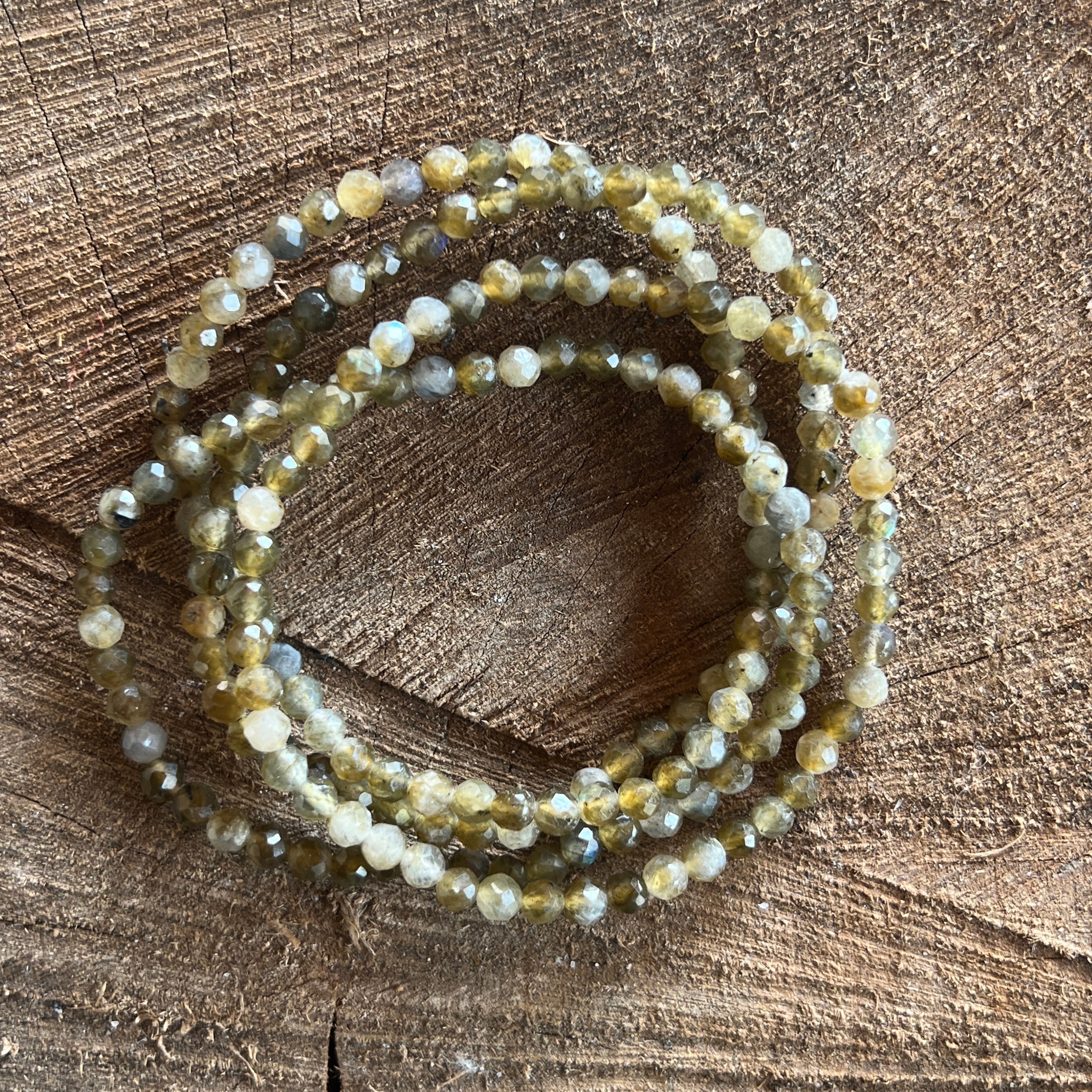 Zelené labradoritové fazetované náramkové gule 4 mm